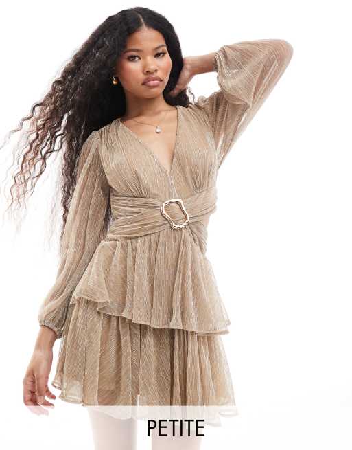 Forever New Petite – Plissee-Minikleid in Gold mit Zierausschnitt