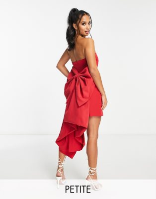 Forever New Petite – Trägerloses Minikleid mit Schleppe als Schleife auf der Rückseite in Rot