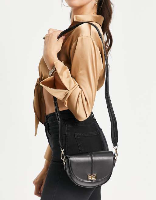 Forever New – Anna – Satteltasche zum Umhängen in Schwarz mit goldfarbener Metallverzierung