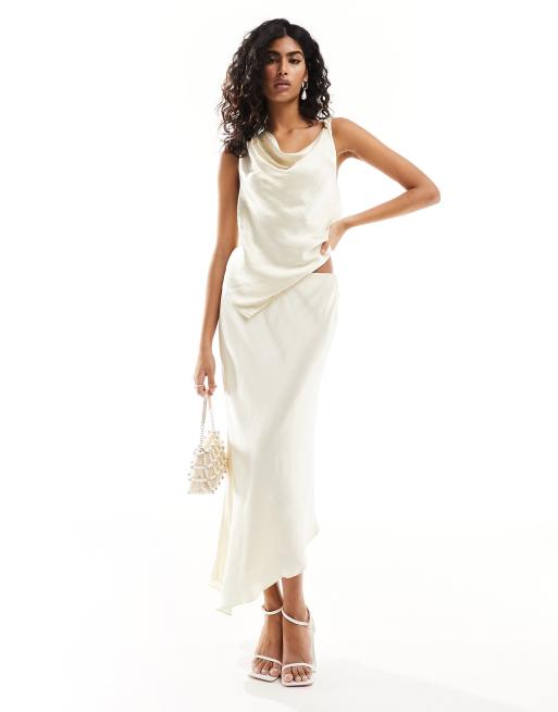 Forever New – Asymmetrisches Satin-Oberteil in Butterbohnen-Elfenbein, Kombiteil