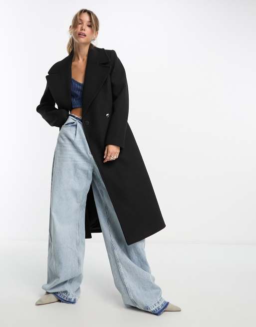 Forever New – Eleganter Mantel in Schwarz mit Wickeldesign und Bindegürtel