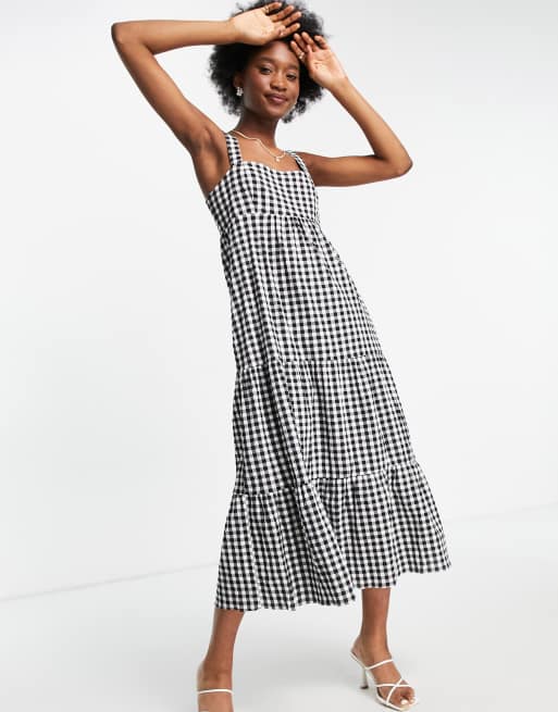 Forever New – Gestuftes Midi-Hängerkleid mit eckigem Ausschnitt und Vichy-Karomuster