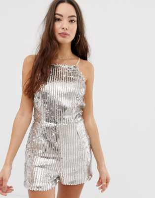 Girl In Mind – Kurzer Jumpsuit mit Pailletten und eckigem Ausschnitt