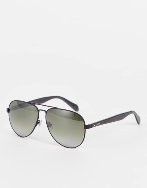 Fossil – Pilotensonnenbrille in Schwarz mit Gläsern in Grün