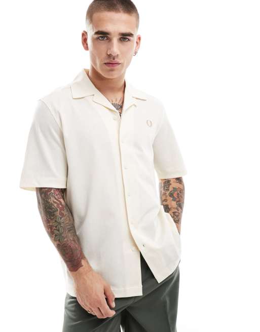 Fred Perry – Hemd aus gewebtem Netzstoff in Wollweiß mit Reverskragen