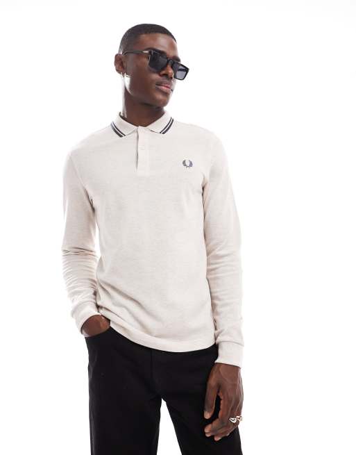 Fred Perry – Langärmliges Polohemd in Wollweiß mit Doppelstreifen
