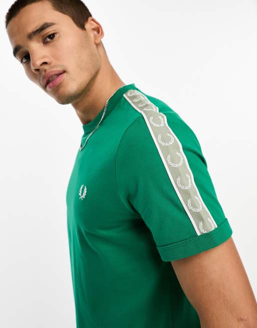 Fred Perry – Ringer-T-Shirt in FP-Grün/Seegras mit farblich abgesetztem Zierband