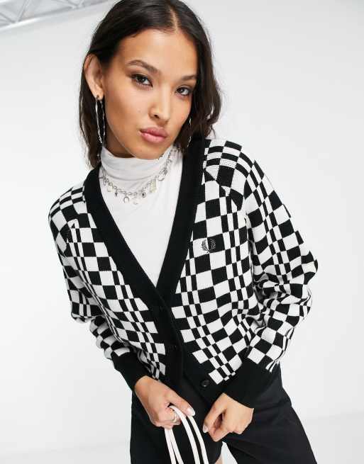 Fred Perry – Strickjacke in Schwarz mit Schachbrettmuster