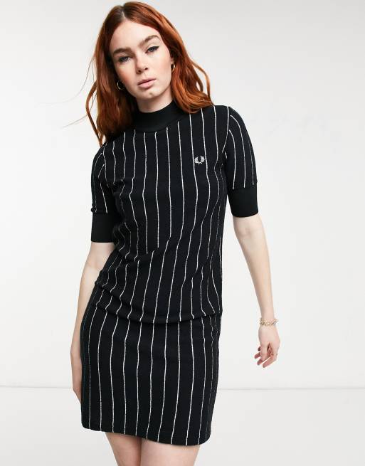 Fred Perry – Strickkleid in Schwarz mit Nadelstreifen