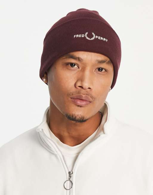 Fred Perry – Strickmütze in Rot mit Grafikprint