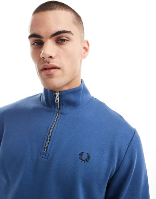Fred Perry – Sweatshirt in Blau mit kurzem Reißverschluss