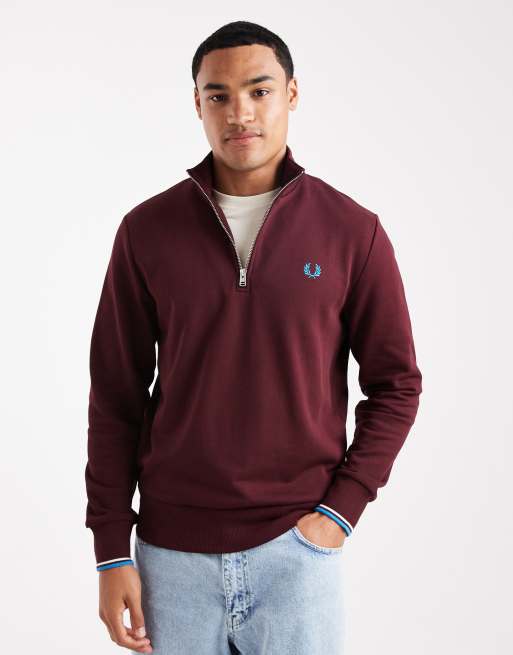 Fred Perry – Sweatshirt in Burgunderrot mit kurzem Reißverschluss