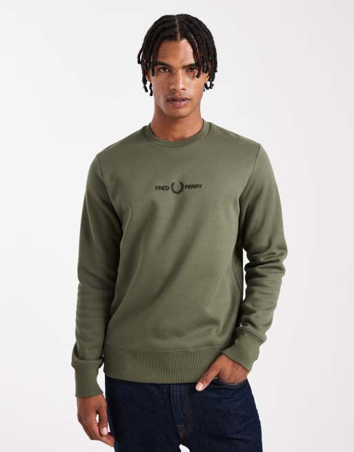 Fred Perry – Sweatshirt in Khaki mit Stickerei