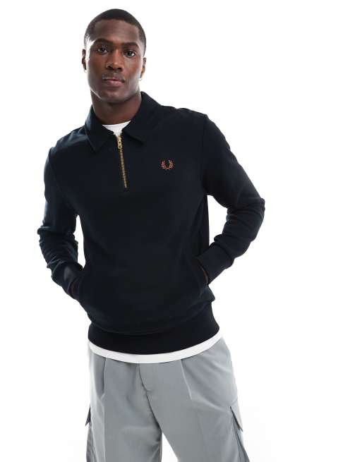 Fred Perry – Sweatshirt in Schwarz mit kurzem Reißverschluss und Kragen