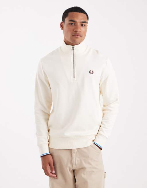 Fred Perry – Sweatshirt in Weiß mit kurzem Reißverschluss