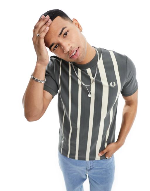Fred Perry – T-Shirt in Grau mit kleiner werdendem Streifenmuster