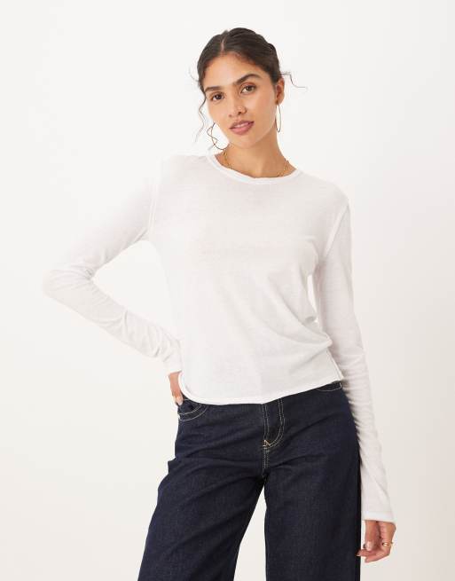 Free People – Nova – Langärmliges Shirt in Elfenbeinweiß