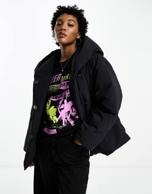Free People – Oversize-Pufferjacke in Schwarz mit Stehkragen