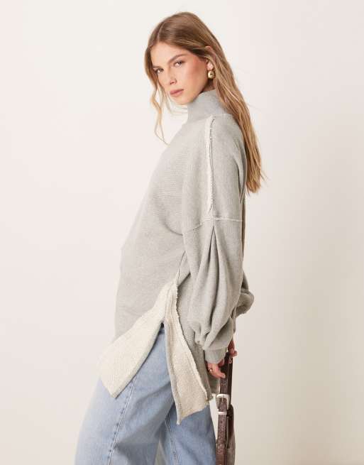 Free People – Sehr locker geschnittener Pullover in Heidegrau