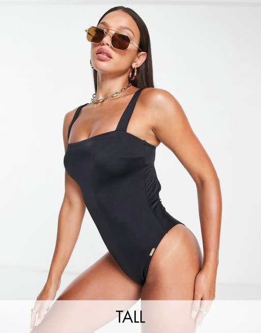 Free Society Tall – Badeanzug in Schwarz mit eckigem Ausschnitt