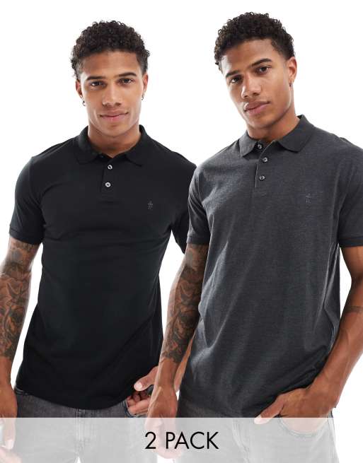 French Connection – 2er-Pack kurzärmlige Polohemden in Schwarz und Anthrazit
