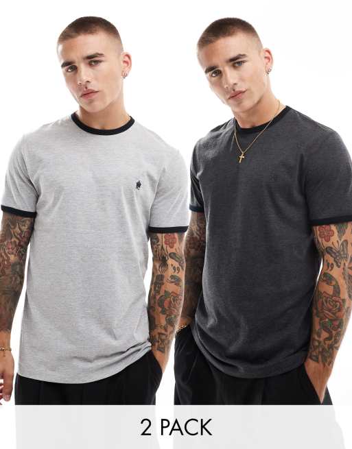French Connection – 2er-Pack T-Shirts in Anthrazit und Hellgrau mit kontrastierenden Abschlüssen