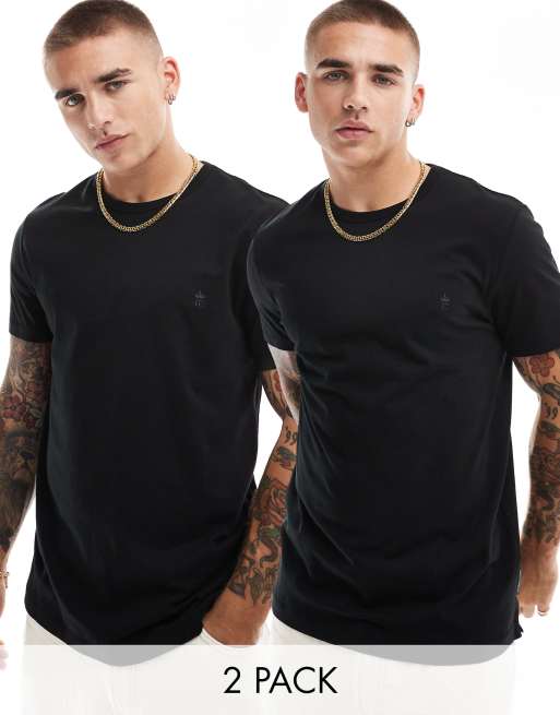French Connection – 2er-Pack T-Shirts in Schwarz mit Rundhalsausschnitt und Logo
