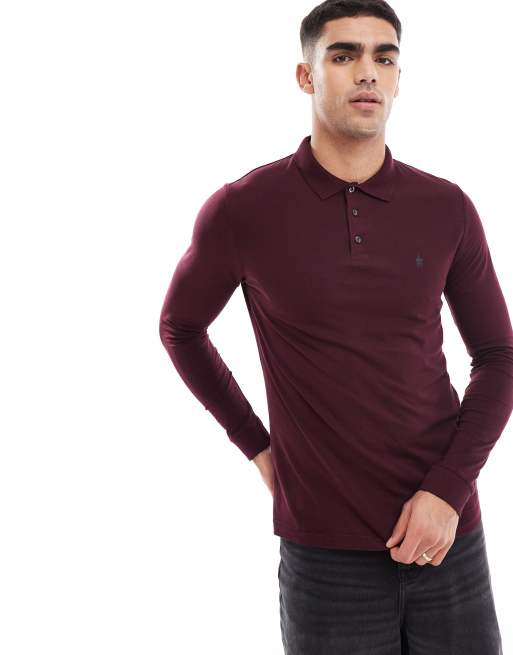 French Connection – Langärmliges Polohemd in Burgunderrot