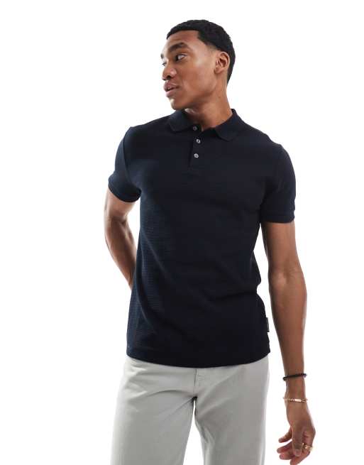 French Connection – Poloshirt aus robustem Ottoman-Stoff in Marineblau