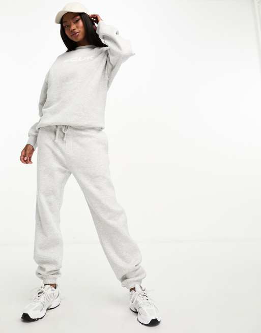 FCUK – Jogginghose in Hellgrau meliert mit weißem Logo, Kombiteil
