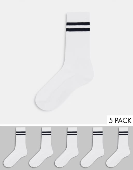 French Connection – 5 Paar weiße Sportsocken mit Streifen