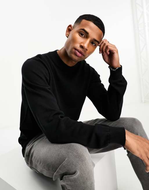 French Connection – Baumwoll-Pullover in Schwarz mit Stehkragen