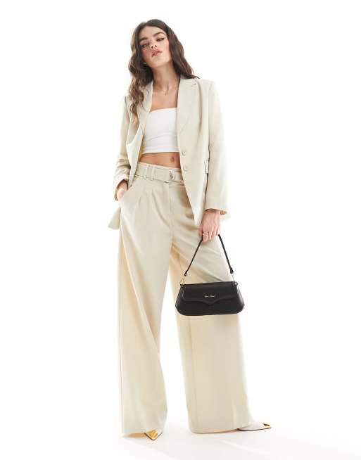 French Connection – Everlyn – Anzughose in Ecru mit weitem Bein, Kombiteil