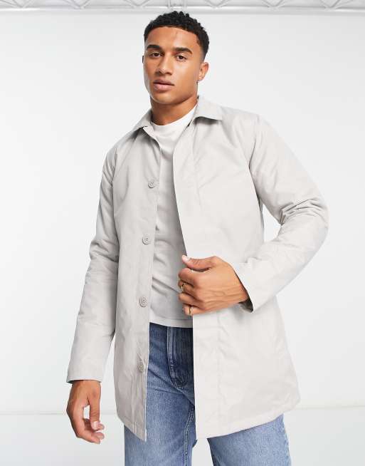 French Connection – Klassische, gefütterte Trenchcoat-Jacke in Steingrau mit Stehkragen