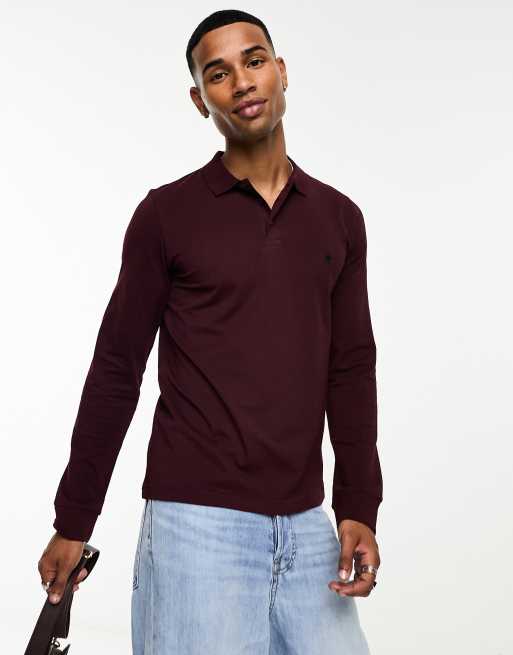 French Connection – Langärmliges Polohemd in Burgunderrot