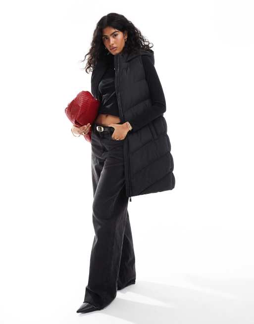 French Connection – Longline-Pufferweste in Schwarz mit Zickzack-Steppung