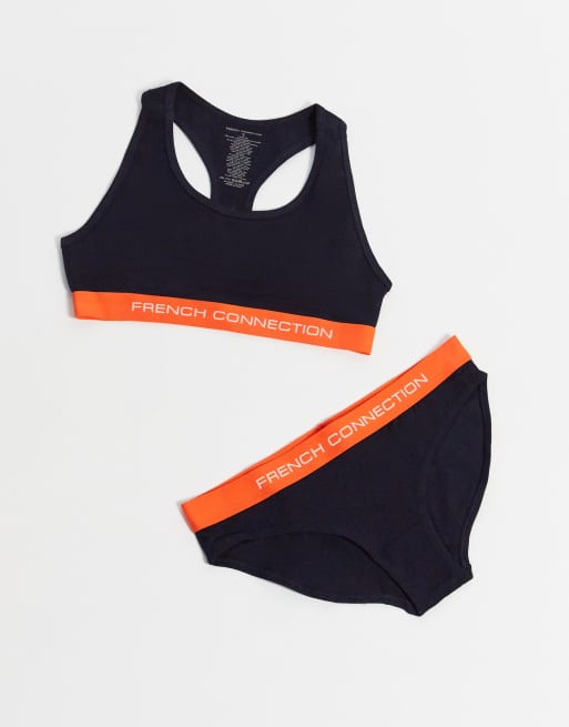French Connection – Set aus BH und Slip mit Logo in Marine