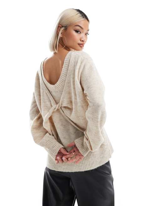 French Connection – Strickpullover in meliertem Taupe mit verdrehtem Rückendetail