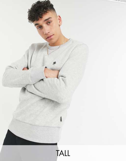 French Connection Tall – Essentials – Pullover mit Rundhalsausschnitt und Logo in Grau
