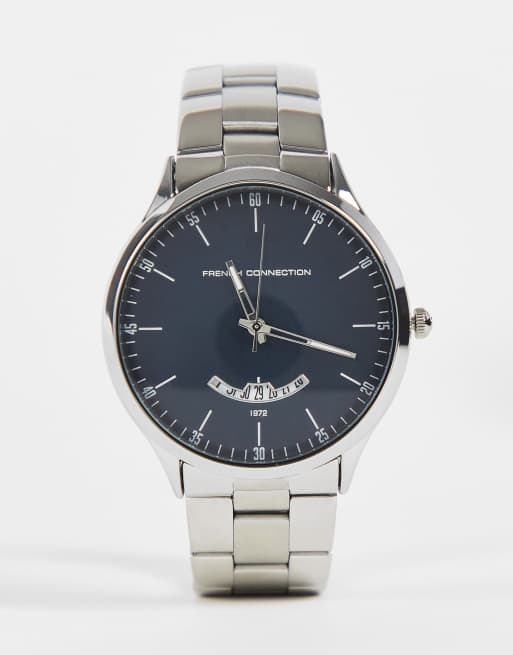 French Connection – Uhr in Silberoptik und Marineblau mit Gliederkettenband
