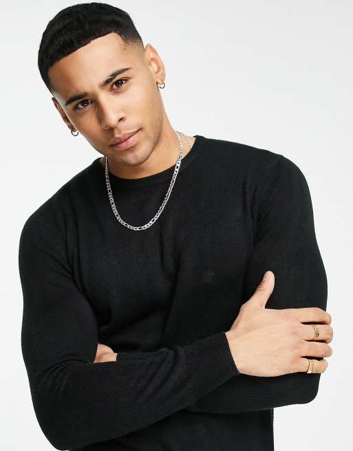 French Connection – Weicher Pullover in Schwarz mit Rundhalsausschnitt und Logo