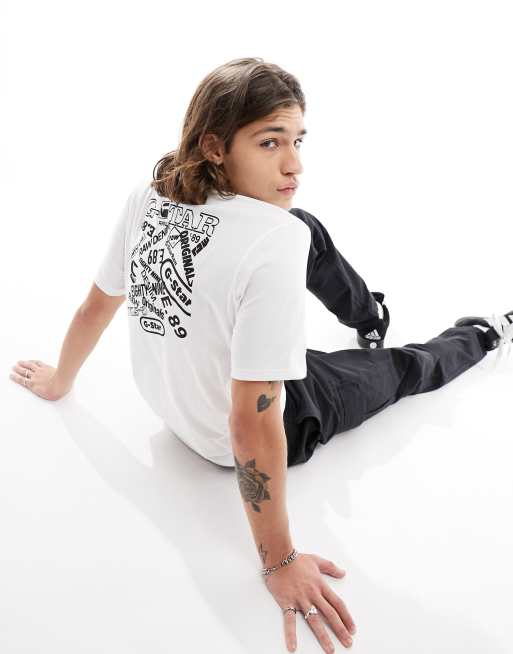 G-Star – T-Shirt in Weiß mit Print auf Brust und Rücken