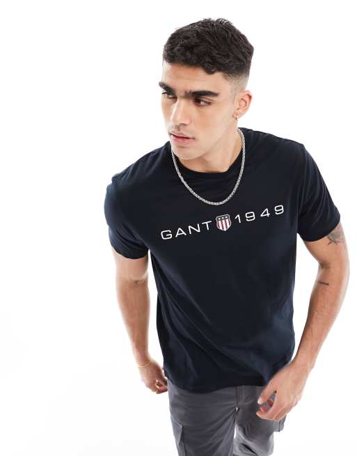 GANT – 1949 – T-Shirt in Schwarz mit Schild-Logoprint