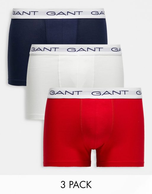 Gant – 3er-Pack Unterhosen in Weiß, Rot und Marineblau mit Logobund