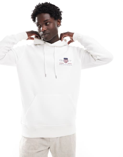 GANT – Archive – Kapuzenpullover in Weiß mit aufgesticktem Shield-Logo