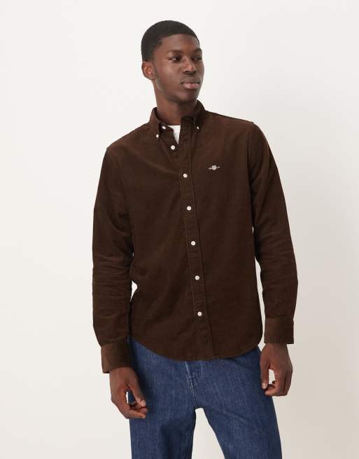 Gant – Regular-Fit-Cordhemd in Braun mit Wappenlogo