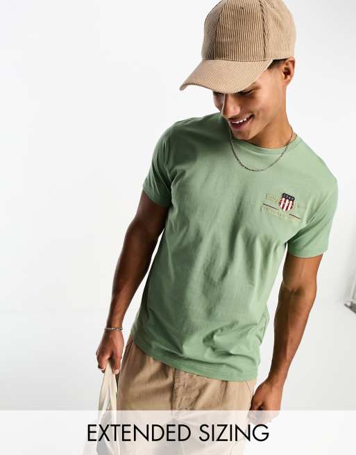Gant – T-Shirt in Mittelgrün mit aufgesticktem Retro-Schildlogo auf Brusthöhe