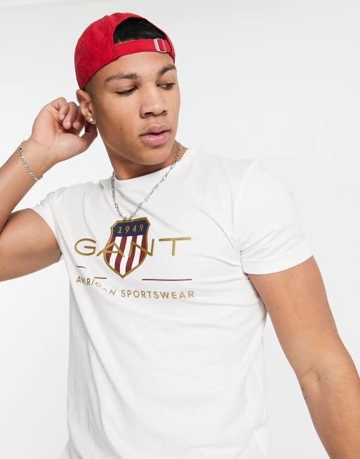 GANT – T-Shirt in Weiß mit großem Schildlogo