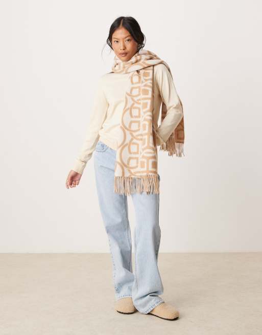 Gant – Wollschal in Beige mit Logomuster