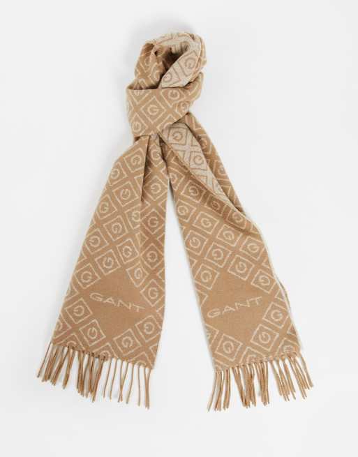 GANT – Wollschal in Hellbraun mit durchgehendem Logo-Muster